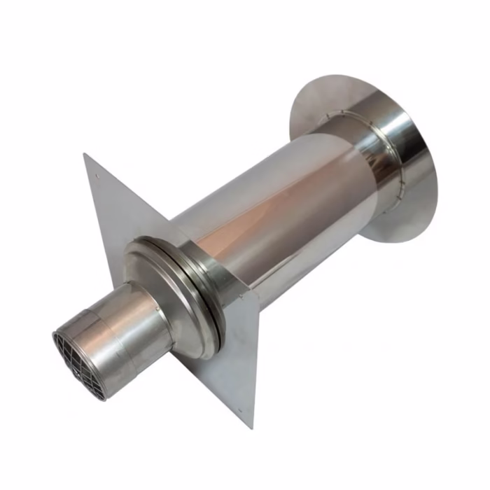 Deze geveldoorvoer biedt een flexibele en efficiënte oplossing voor rookgasafvoer en luchttoevoer, met een verstelbare lengte voor eenvoudige installatie.